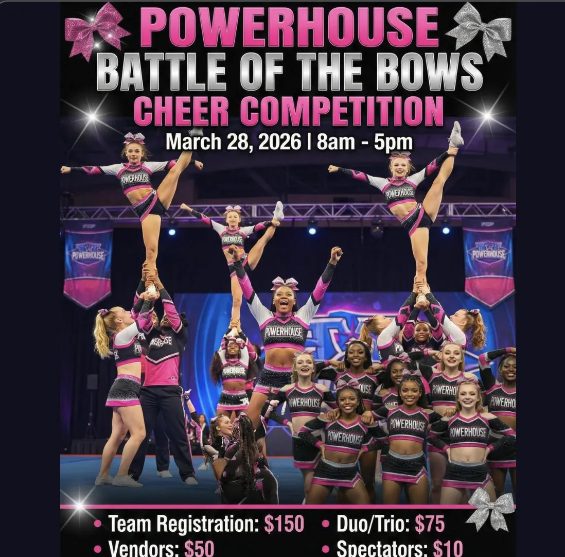 Get ready to show off your skills! The Battle of the Bows is an open invitation to all cheer, dance, and majorette teams. Whether you're a rec, varsity, or high school team, we want to see you on the mat.
